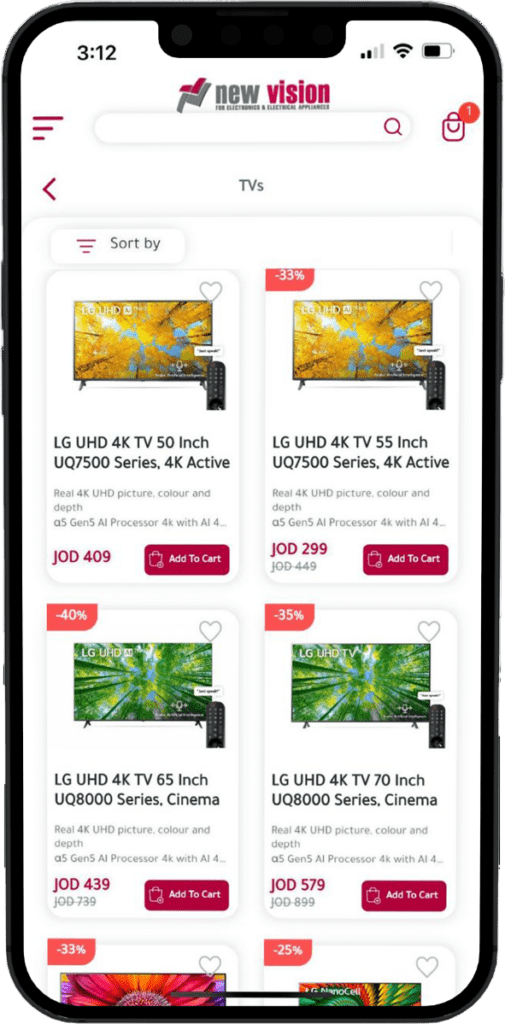 - الشراء عبر الإنترنت: استمتع بسهولة التسوق من المنزل. قم بإضافة الشاشة التي اخترتها إلى سلة التسوق والمضي قدمًا في عملية الدفع.